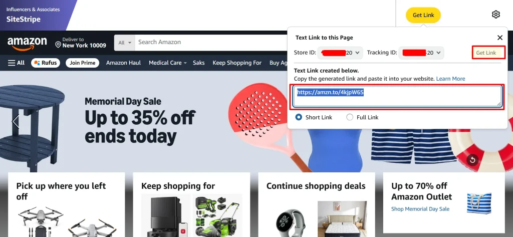 After logging into Amazon Associates, SiteStripe appears at the top of Amazon.com. It lets you grab links instantly.